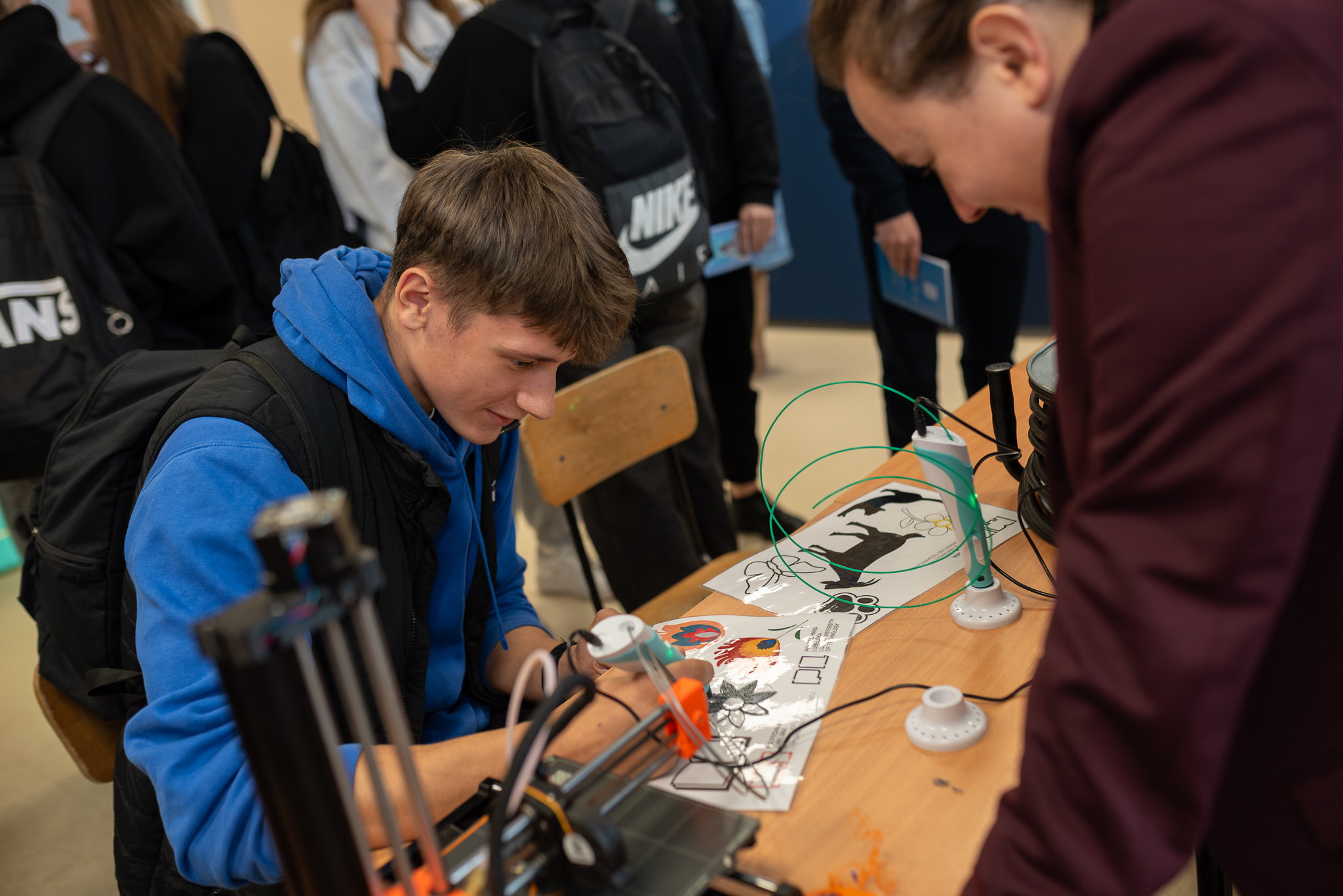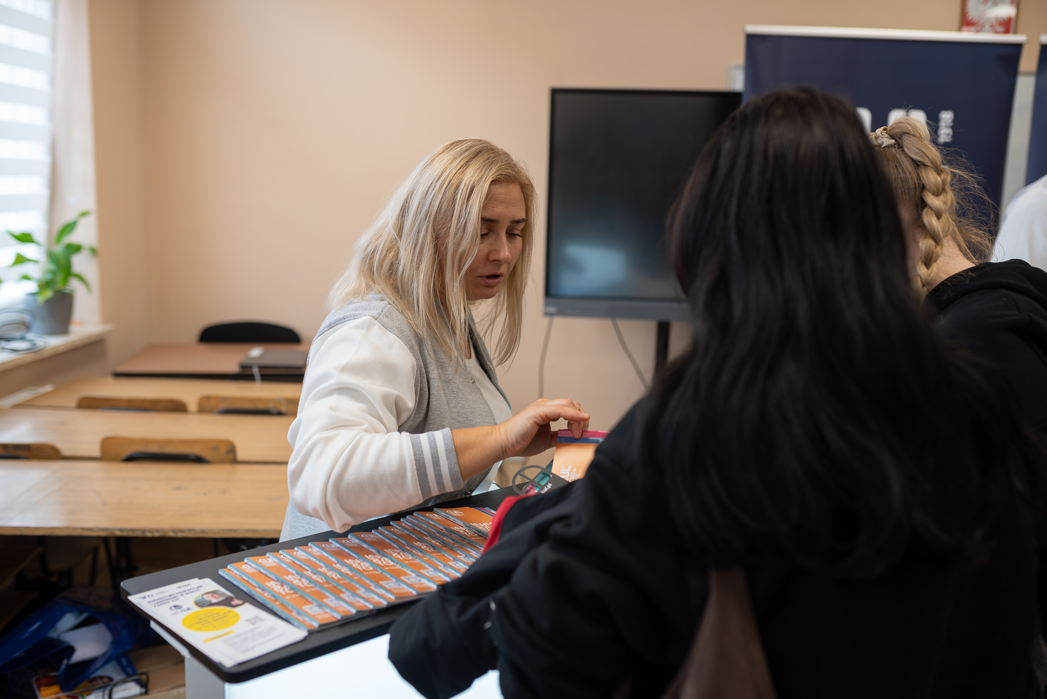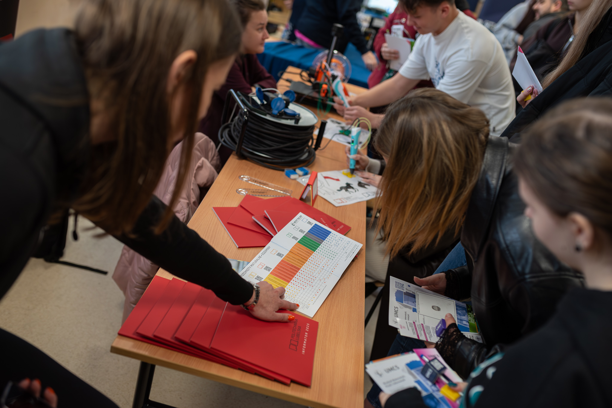 Laura Kazanowska przybliżyła temat systemów zapisu liczb, a Jakub Pilchoń zaprezentował zastosowania wizji komputerowej. Prowadzący chętnie odpowiadali na pytania uczniów dotyczące studiów na Politechnice Lubelskiej. Z kolei mgr inż. Magdalena Piłat-Rożek wraz z Sylwią Pikur (Centrum Komunikacji i Marketingu) opowiadały o bogatej ofercie edukacyjnej, życiu kampusowym oraz możliwościach rozwoju w organizacjach i kołach naukowych.