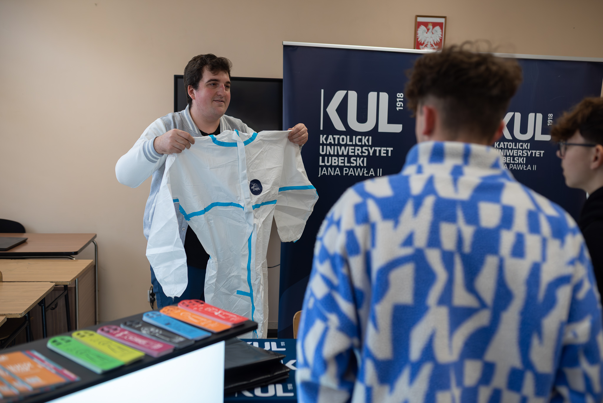 Dr Grzegorz Tutak, mgr Jan Gondek oraz dr Ewa Kula zaprezentowali uczniom wybrane środki techniki kryminalistycznej oraz sposoby zabezpieczania śladów i sporządzania dokumentacji. Dodatkową atrakcją była gra edukacyjna o Unii Europejskiej, która w ciekawy sposób łączyła zabawę z nauką.