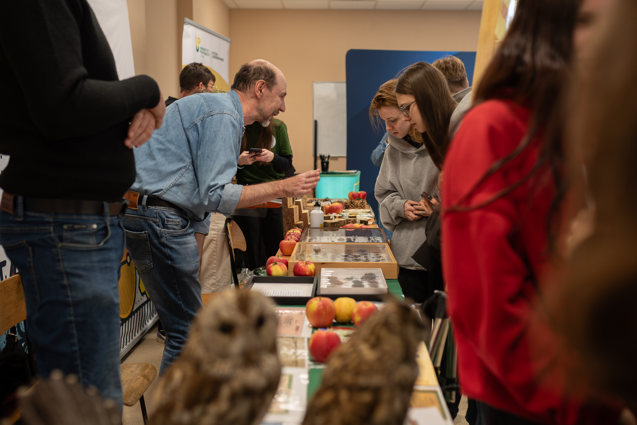 W części przyrodniczej uczestnicy obserwowali pod mikroskopem organizmy jednokomórkowe, a także przyglądali się budowie owadów i pajęczaków (zapoznali się z wyglądem i biologią wybranych przedstawicieli zwierząt w oparciu o okazy motyli, chrząszczy i ptaków). Mieli również okazję rozpoznawać drzewa po nasionach, szyszkach i próbkach drewna.