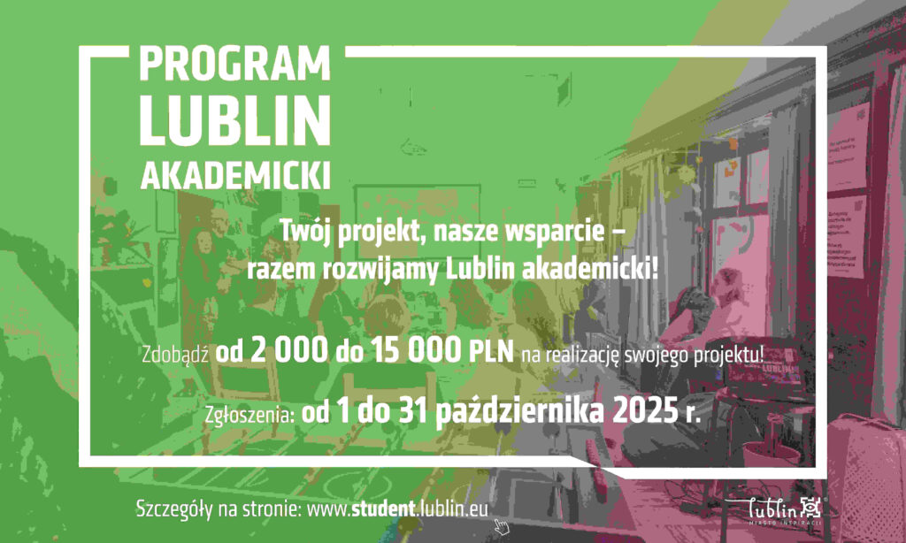 Szanowni Państwo, do 15 tys. zł dofinansowania mogą otrzymać projekty rozwijające życie akademickie Lublina i integrują studentów z lokalną społecznością. Nabór wniosków trwa przez cały październik, a wsparcie obejmuje m.in. konferencje, konkursy, warsztaty, turnieje naukowe oraz spacery tematyczne dla studentów i naukowców w języku polskim i angielskim. Projekty mogą zgłaszać uczelnie, wydziały, instytuty, koła naukowe […]